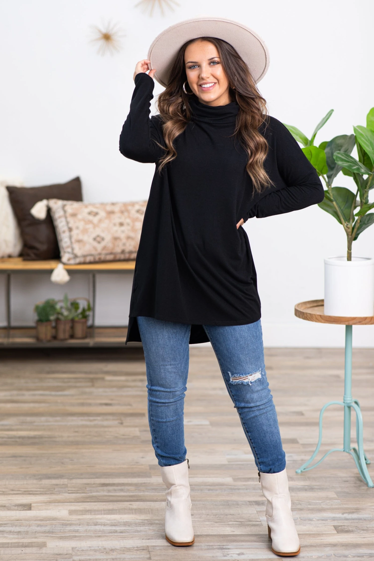 - Collar: Cowl Neck