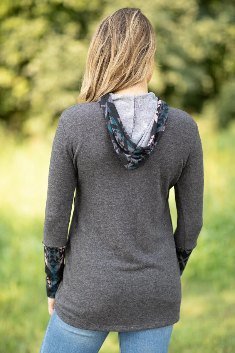 - Colors: Charcoal, Teal, Light Pink, Grey
