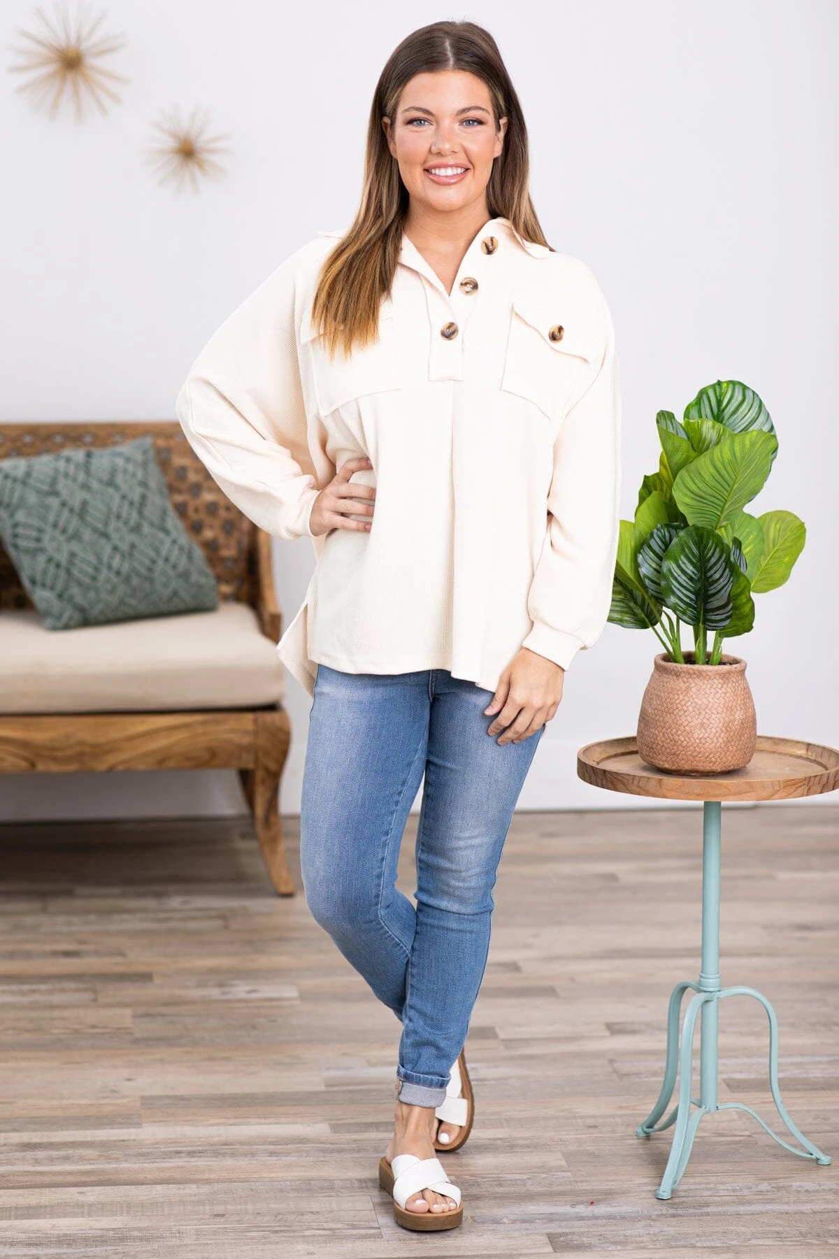 - Collar: 1/4 Button Up
