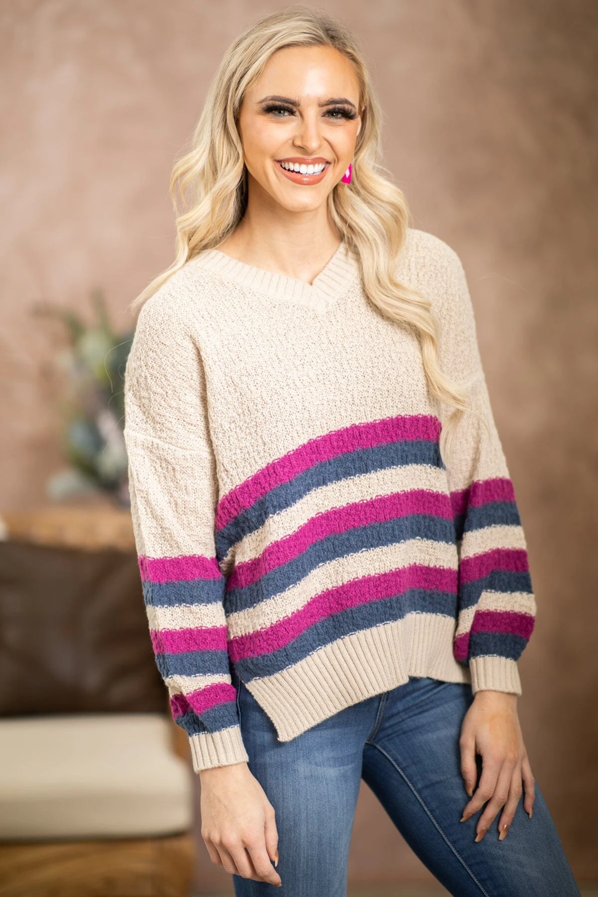 - Colors: Oatmeal, Fuchsia, Slate Blue