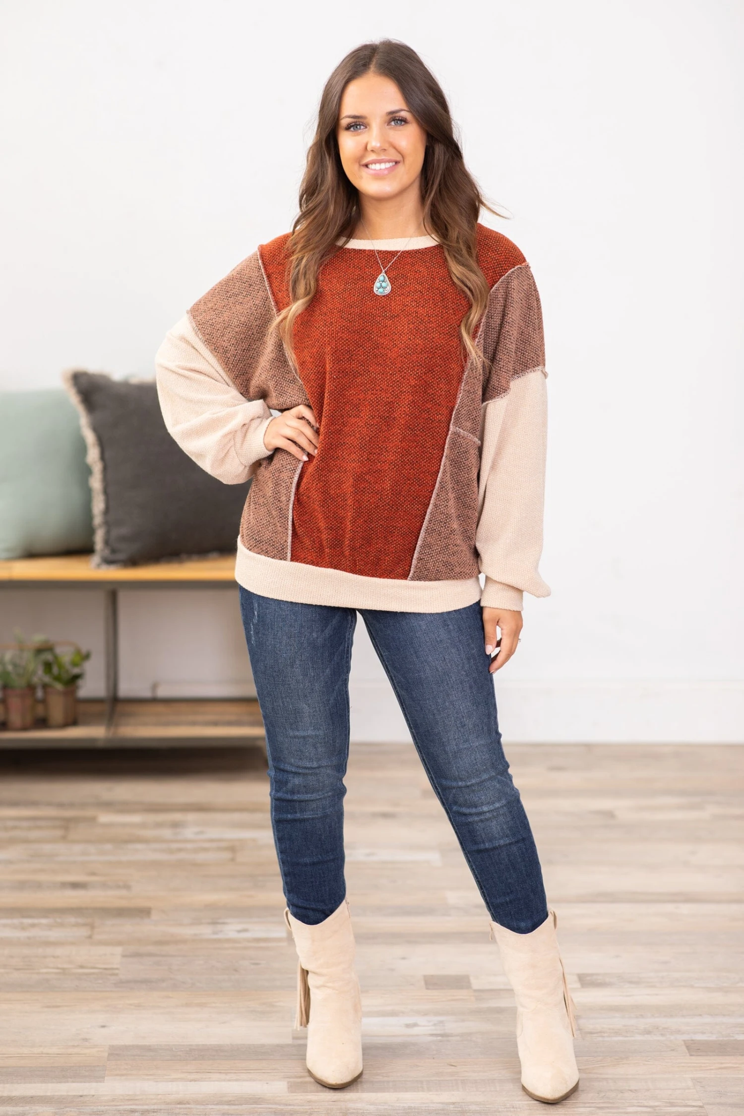 - Colors: Rust, Mocha, Beige