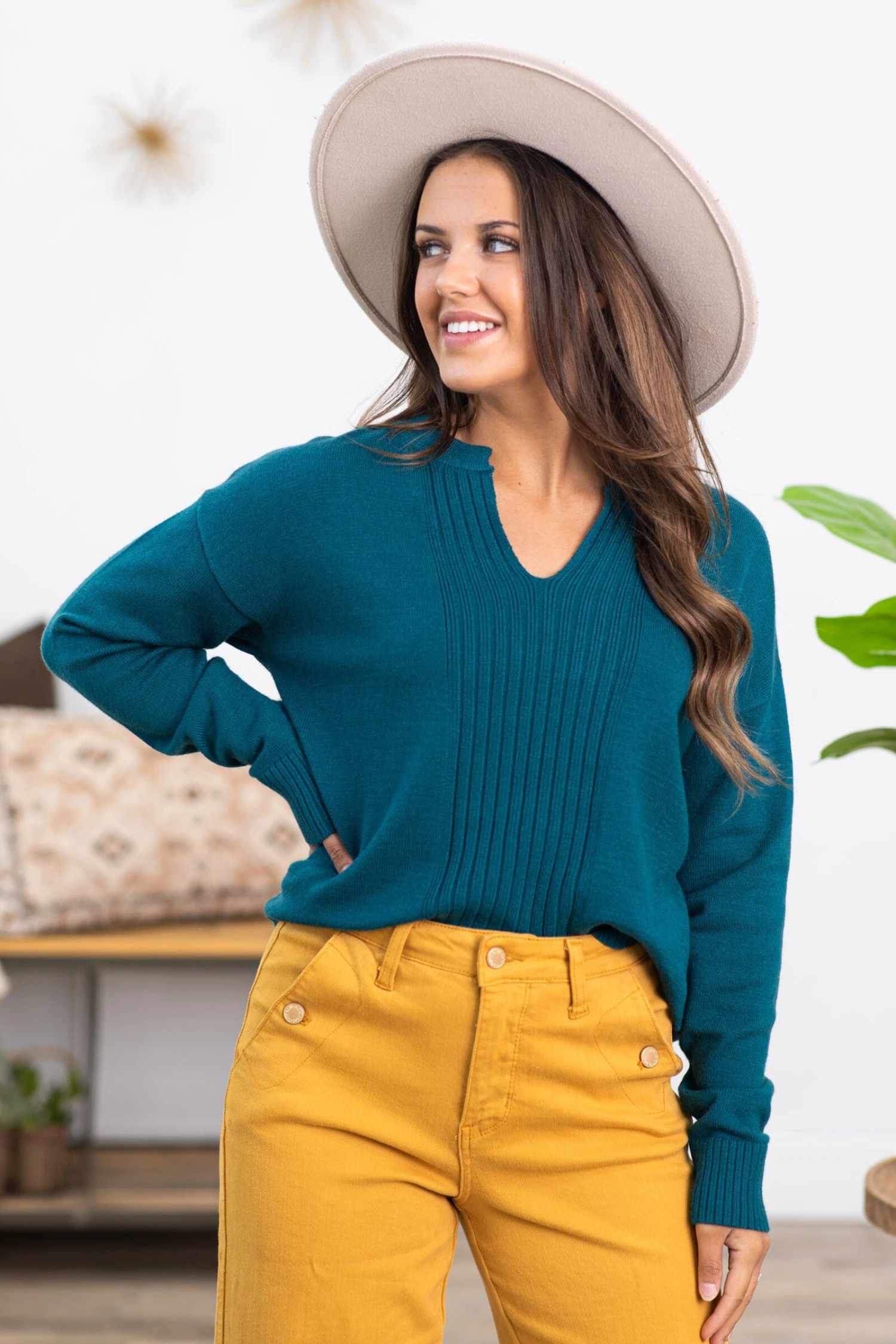 - Collar: V-Neck